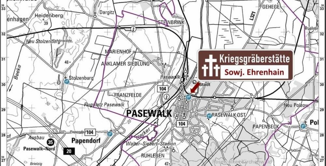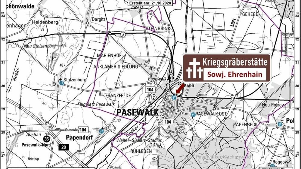 Die Stadt Pasewalk liegt im Landkreis Vorpommern-Greifswald. Die Gedenkstätte „Leninhain“ befindet sich zwischen Fischer- und Haußmannstraße sowie Mühlen- und Bahnhofstraße. Der Ehrenhain, dessen Grundsteinlegung zum 100. Geburtstag Lenins im April 1970 erfolgte, umfasst eine Grablage für 17 sowjetische Soldaten, die in 13 Gräbern beigesetzt wurden, d. h., es gibt hier 4 Gräber mit einer Doppelbelegung.