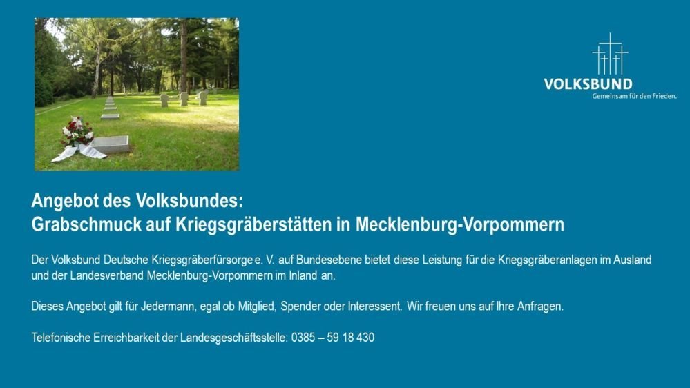 Bei Bestellungen für die Kriegsgräberanlagen im Ausland geben wir Ihre Wünsche an unsere Bundesgeschäftsstelle in Kassel weiter. Hier in Mecklenburg-Vorpommern wenden Sie sich bitte an unsere Landesgeschäftsstelle.