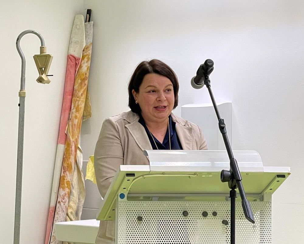Für den Volksbund Deutsche Kriegsgräberfürsorge e. V. dankte Sozialministerin Stefanie Drese in ihrer Funktion als Vorsitzende des Regionalverbandes Bad Doberan Petra Klawitter für ihr unermüdliches Engagement bei der Weiterentwicklung von Kriegsgräberstätten zu Lernorten. „In dieser Zeit sind zahlreiche beeindruckende Projekte, zeitgeschichtliche Dokumente und Materialien entstanden. Und das immer aus dem Blickwinkel junger Menschen heraus. Ein enormer Zugewinn, der Geschichte wahrlich lebendig macht, der vor den Konsequenzen von Krieg, Flucht und Vertreibung warnt und das Andenken an die Gefallenen wahrt. Dass ihr euch dieser Aufgabe angenommen habt, finde ich großartig “, so die Ministerin.