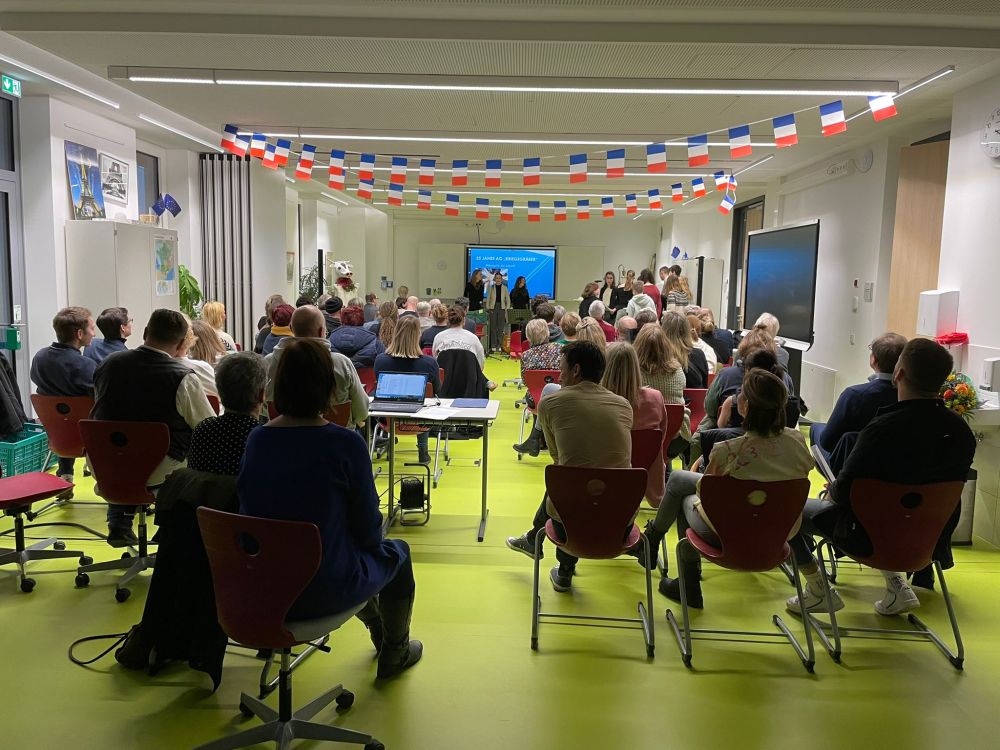 Der Landesverband Mecklenburg-Vorpommern hatte für den 17.01.2025 eine ganz besondere Einladung erhalten: Die „AG Kriegsgräber“ der Europaschule Rövershagen feierte ihr 25-jähriges Bestehen. Bereits im Foyer der Schule waren zahlreiche Roll-Ups zu sehen, auf denen die einzelnen Projekte der AG vorgestellt wurden. Während der Feierstunde ging die Leiterin der AG, Petra Klawitter, auf jedes Projekt, das im letzten Vierteljahrhundert realisiert wurde, einzeln ein. Darunter waren zahlreiche Kooperationen mit dem Volksbund, wie beispielsweise Workcamps, Pflegeeinsätze auf regionalen Kriegsgräberstätten oder Gedenkreden zum Volkstrauertag. Anschließend stellten die aktuellen Mitglieder die Projekte vor, an denen sie derzeit arbeiten.